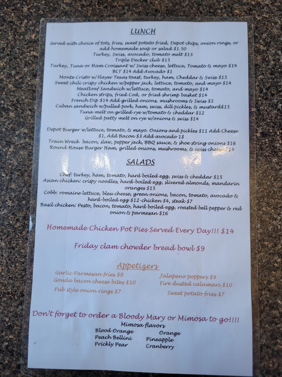 Overall, The Depot Eatery excels in providing hearty, flavorful dishes within a warm, welcoming environment.